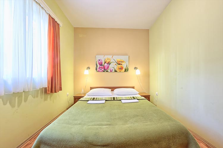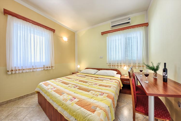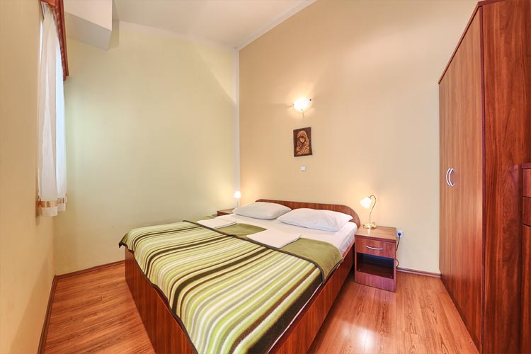 Dvokrevetne Sobe su luksuzno uređene, vrhunski opremljene i klimatizirane. Nalaze se u villi "Rozi", svega 50-tak metara od plaže. U svakoj sobi nalazi se po jedan TV i radio prijemnik. Hraniti se možete u našem restoranu gdje nudimo domaće specijalitete, dnevni menu i jela po narudžbi.