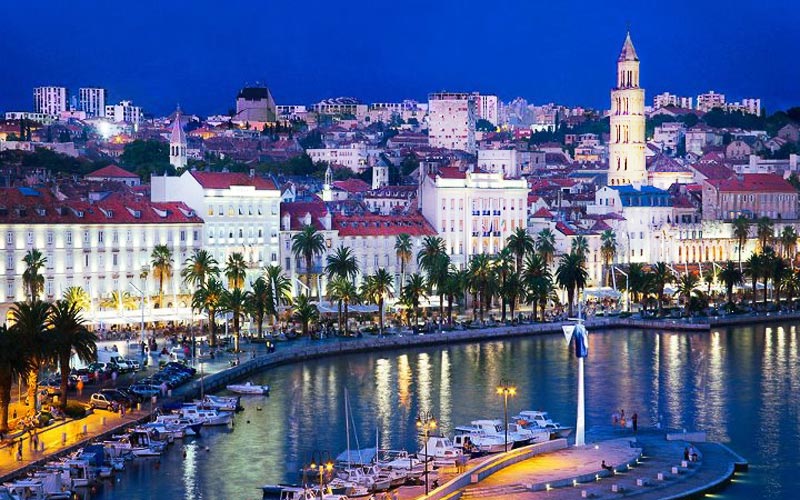 Diocletian’s Palace in Split was built between the 3rd and 4th centuries by Roman emporer Diocletian. In the Middle Ages, the Cathedral of Saint Domnius (Sveti Duje) was constructed using elements from the ancient mausoleum, and Romanesque churches, medieval fortifications, and Gothic, Renaissance, and Baroque palaces were also built inside the Roman complex.