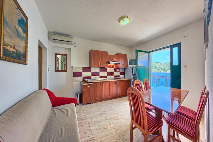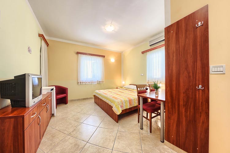 Na Vašem raspolaganju nalazi se 11 moderno opremljenih villa u našem Apartmanskom naselju "Ruzmarin", s izravnim pogledom na more ili sa strane balkona, zasebnim ulazima i klima - uređajima. Svaka od villa se sastoji od 4 ili manje apartmana i dvokrevetne sobe, ovisno o dostupnom prostoru. Postoji 8 različitih tipova apartmana i dvokrevetne sobe (sve opisano ovdje) koji Vam se nalaze na raspolaganju.